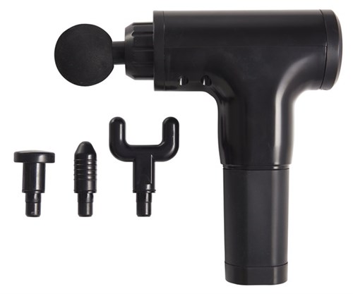 Massage pistol fra DAY. Bruges på ømme muskler og forbedrer din restitution. Med opladeligt batteri og flere hastigheder. 4 forskellige massagehoveder. . Lithium batteri: 2200mAh. 6 hastigheder. Ledningsfri. Støjniveau.