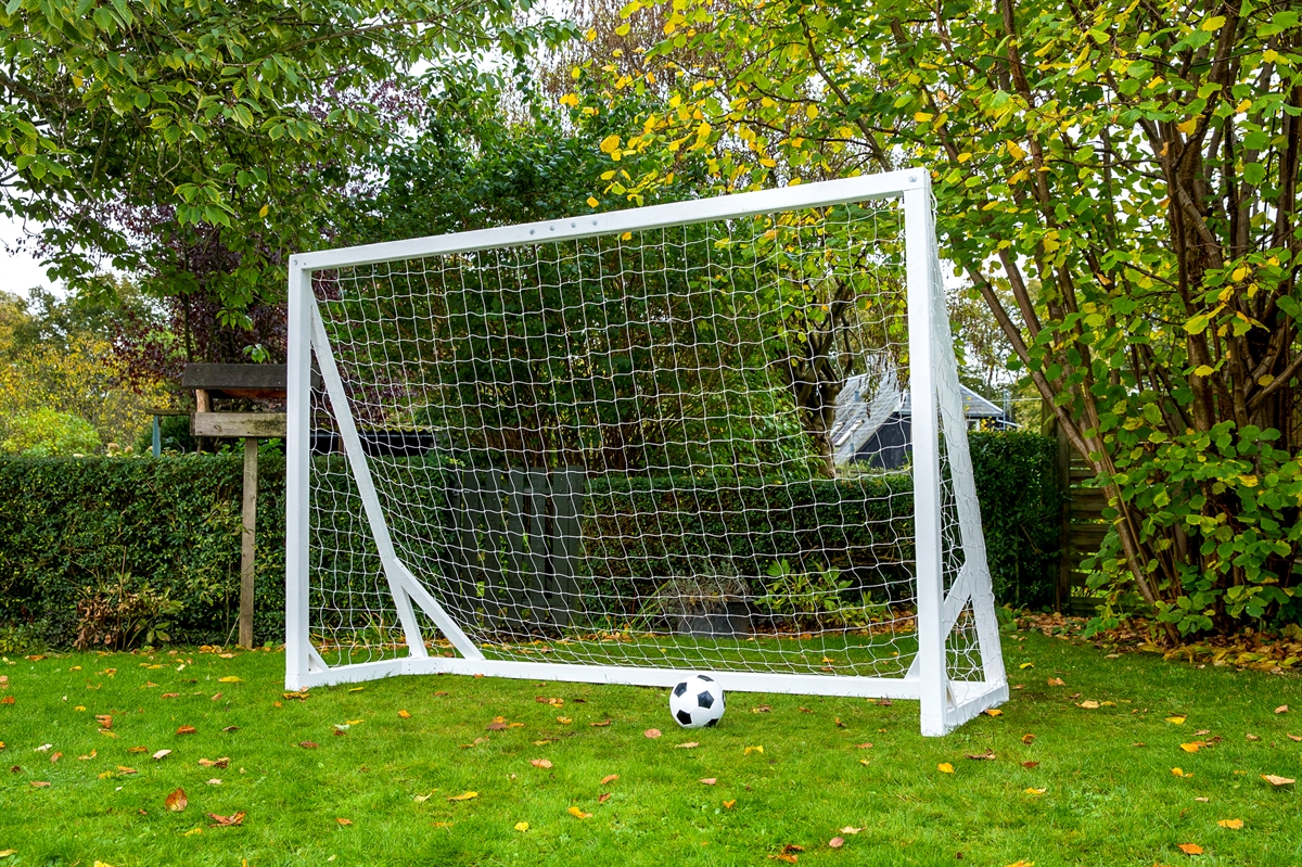 Her får du et stærkt fodboldmål i træ med dimensionerne 300 x 200 cm – FRI FRAGT OG HURTIG LEVERING!