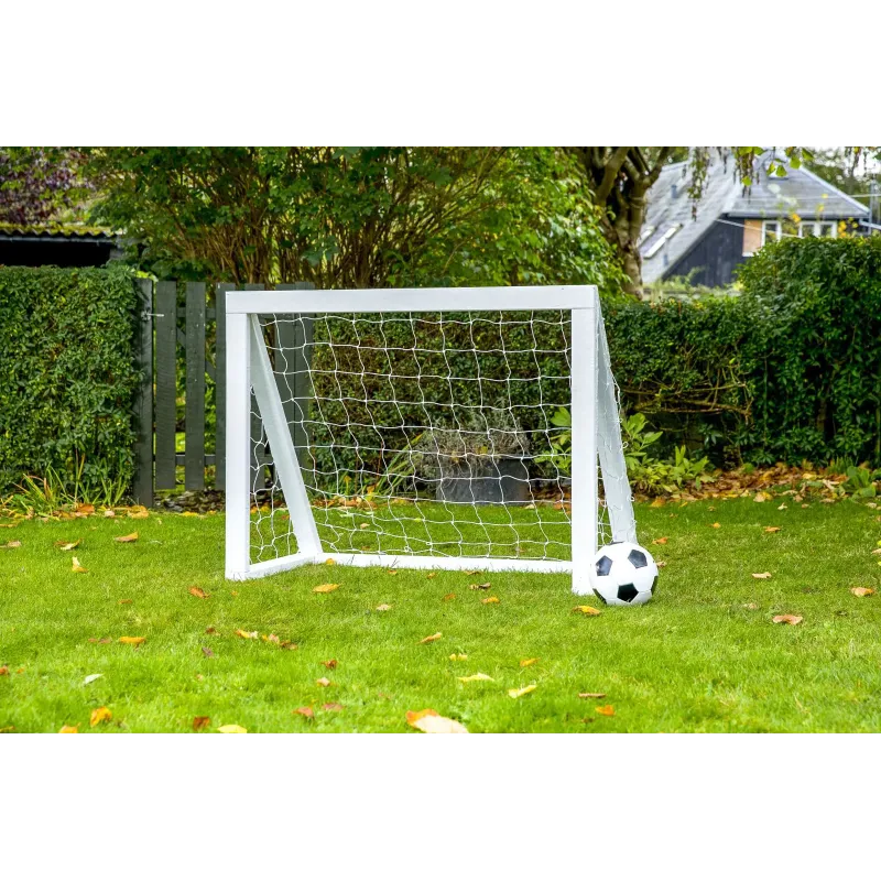 Homegoal Pro Micro – HvidFodboldmålet til den lille have eller de allermindste boldspillere, da det ikke kræver meget plads. Med en bredde på 125 cm. kan der nemt findes plads til dem, selvom banen er lille.De små mål kan anvendes udenfor året rundt og de er både stabile og holdbare.SpecifikationerStørrelse: 125 x 100 x 60cmMateriale: Solidt fyrretræ 39 x 70 mmBehandlet med grunder og 2 lag træbeskyttelseForboret og med afrundede kanterRustfrie skruer og kramperNet: 3 mm kraftigt vejrbestand…