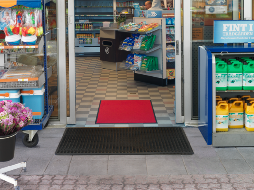 Måtte Yoga Light 106×157 cm sortYoga LIGHTer en lettere ringgummimåtte med indbygget skråaffaset kant til placering direkte på gulvet eller jorden. Det stærke og skridsikre ringmønster skraber effektivt alt groft snavs af. Den åbne profil rummer store mæn