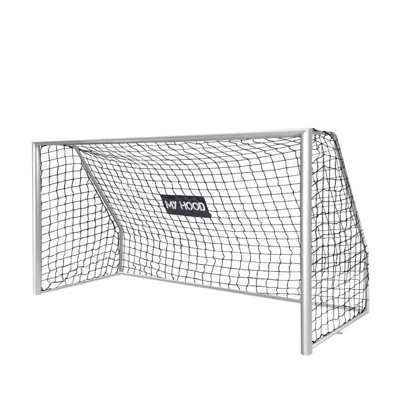 My Hood Champion 300×200 Fedt mål i en kraftig kraftig kvalitet og i et design som du kender fra fodboldklubben.Fodboldmålet er i galvaniseret stål med en hvid pulverlakering, og er dermed optimalt beskyttet mod rust.SpecifikationerStørrelse: 300 x 200 x 120 cmRamme: Ø76 mm, godstykkelse 1,2 mmBagstivere: Ø32 mm, godstykkelse 0,9 mmForstærket samlinger, godstykkelse op til 1,6 mmMateriale: Galvaniseret stålKraftigt net, Ø2,5mm, 1000 g5 jordspyd til fastgørelseVægt: 23 kg