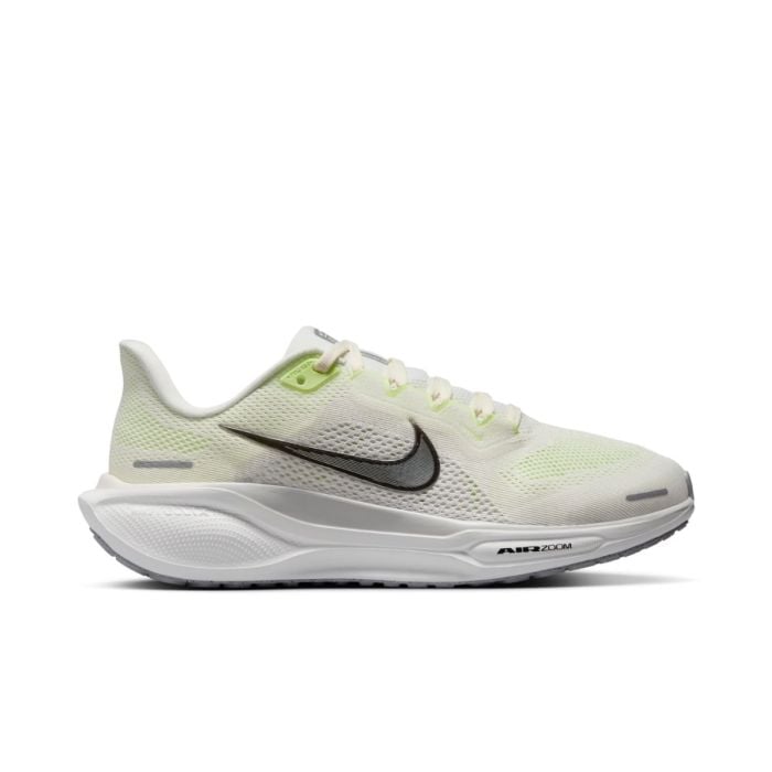 Nikes mængdetræningssko Pegasus rammer nu 41ende udgave. Nike Air Zoom Pegasus 41 har, ligesom sine forgængere, fokus på støtte, komfort og responsivitet. På denne måde sikres du en god løbeoplevelse, uanset hvor langt du skal løbe. Mellemsålen er lavet af Nikes React-skummateriale, som, sammen med Air Zoom-enheder under hæl og forfod, giver løberen en fjedrende og responsiv fornemmelse. Overdelen er opgraderet siden sidste model for at reducere skoens vægt, men er bygget på samme læst som Air Zoom Pegasus 40. Ydersålen er designet i den karakteristiske waffle-konstruktion, som giver skoen et godt greb i alt slags vejr og terræn.