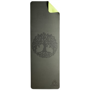 Balance yogamåtte – World Tree, grå/grøn Ligesom vores Flower of Life-måtter tilbyder disse World Tree-måtter med deres dimensioner 182 x 61 cm masser af plads til dine øvelser. De er 6 mm tykke – ideelle til et godt greb og på samme tid behageligt bløde.